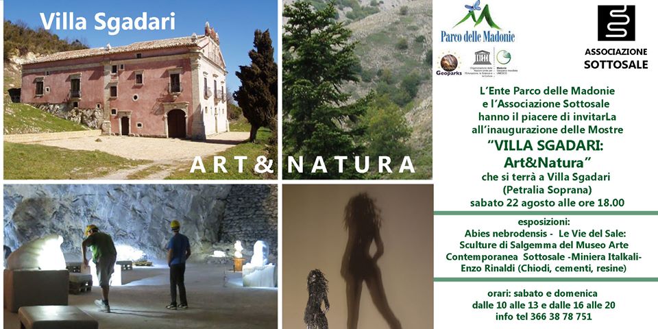 Sabato 22 agosto alle ore 18 l’Ente Parco delle Madonie e l’Associazione Sottosale inaugurano a Villa Sgadari, la settecentesca dimora storica appena fuori Petralia Soprana, la mostra “Art&Natura”. L’esposizione, che rimarrà aperta sabato e domenica, dalle 10 alle 13 e dalle 16 alle 20 sino alla fine di ottobre, si muove tra aspetti naturalistici e artistici, e presenta a pian terreno la pregevole mostra del naturalista Antonio Mirabella dedicata all’Abies nebrodensis, curata dal Parco con il Dipartimento Saaf–Unipa, responsabile scientifico il Prof. Rosario Schicchi, mentre ai piani superiori, grazie ad una convenzione stipulata tra SottoSale ed Ente Parco, sarà possibile visitare un ampio percorso dal titolo “Le Vie del Sale”.