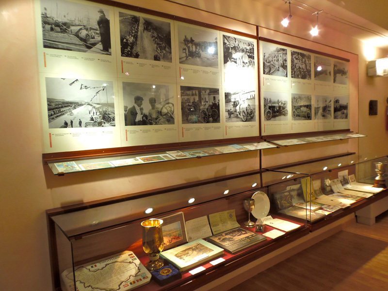 Tra i reperti più rappresentativi ed esclusivi, sono esposti le Targhe in bronzo degli Anni 1921/32/37/50,e del 1965 vittoria conseguita dal famoso Nino Vaccarella (in coppia con Lorenzo Bandini con la ferrari),vincitore di tre edizioni, è nominato Presidente onorario del Museo.Cos i’come sono esposti i caschi di,Elford,Hezemans ,Giunti, Scarfiotti, Pucci.I set di gara di Vaccarella,Muller Merzario, Baghetti,De Adamich,Galli,Maria Teres a De Filippis ,Munari,al personaggio Ing.Mauro Forghieri (ex Direttore tecnico della Ferrari,dagli Anni 1960 fino agli Anni 1980.Della nuova (Aula Moderna Formula Rally):i set di gara