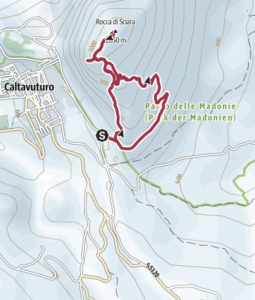 Lasciate le auto in Via Terravecchia, nella periferia dell’abitato di Caltavuturo, inizierete a salire lungo il sentiero geologico “Rocca di Sciara”. Tra lecci, sughere e pini osserverete un’importantissima successione geologica, testimonianza di un antico bacino di sedimentazione. Giunti in cima alla rocca si potranno ammirare i ruderi dell’Eremo di San Nicola, da cui si scorge un panorama mozzafiato sul paese sottostante e sul Parco delle Madonie.