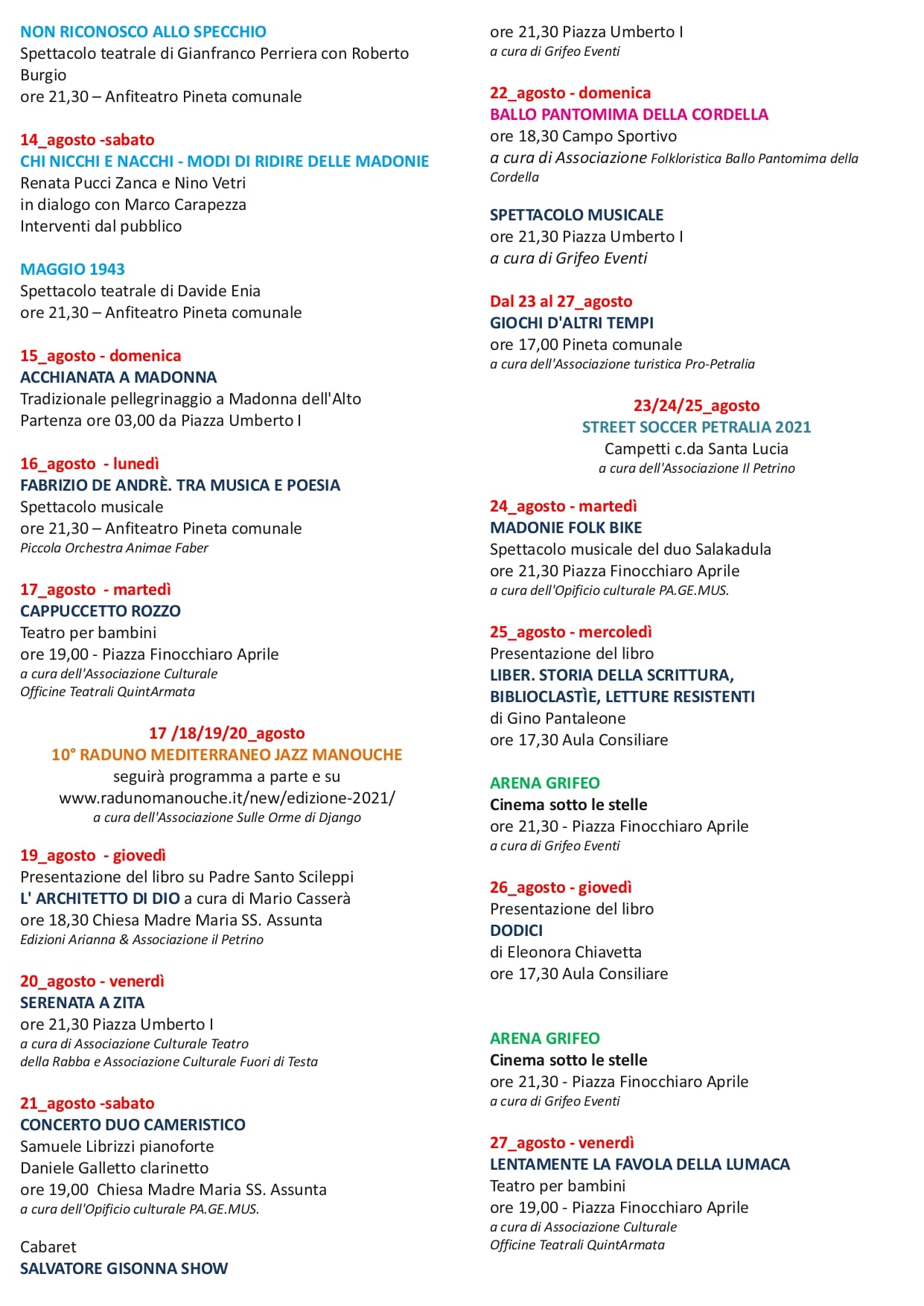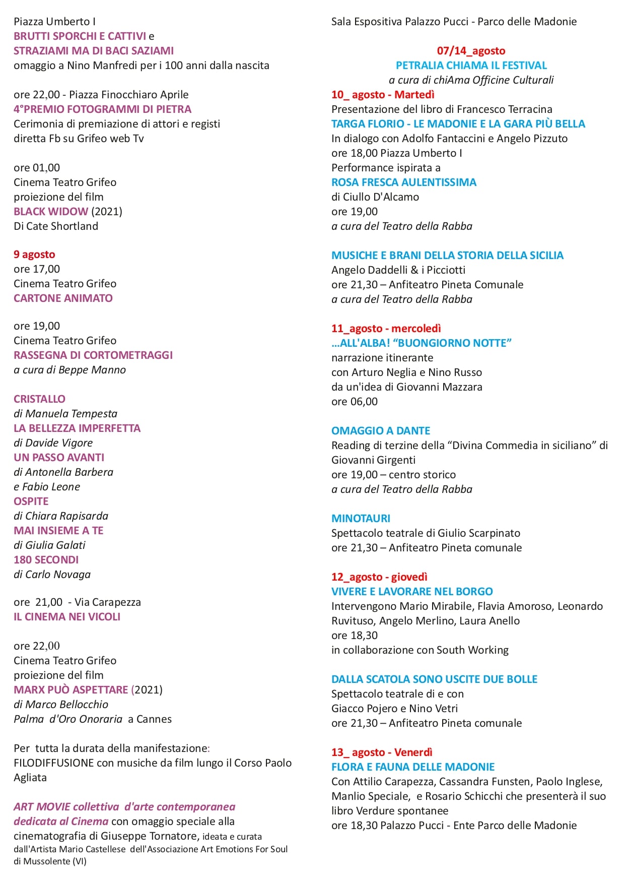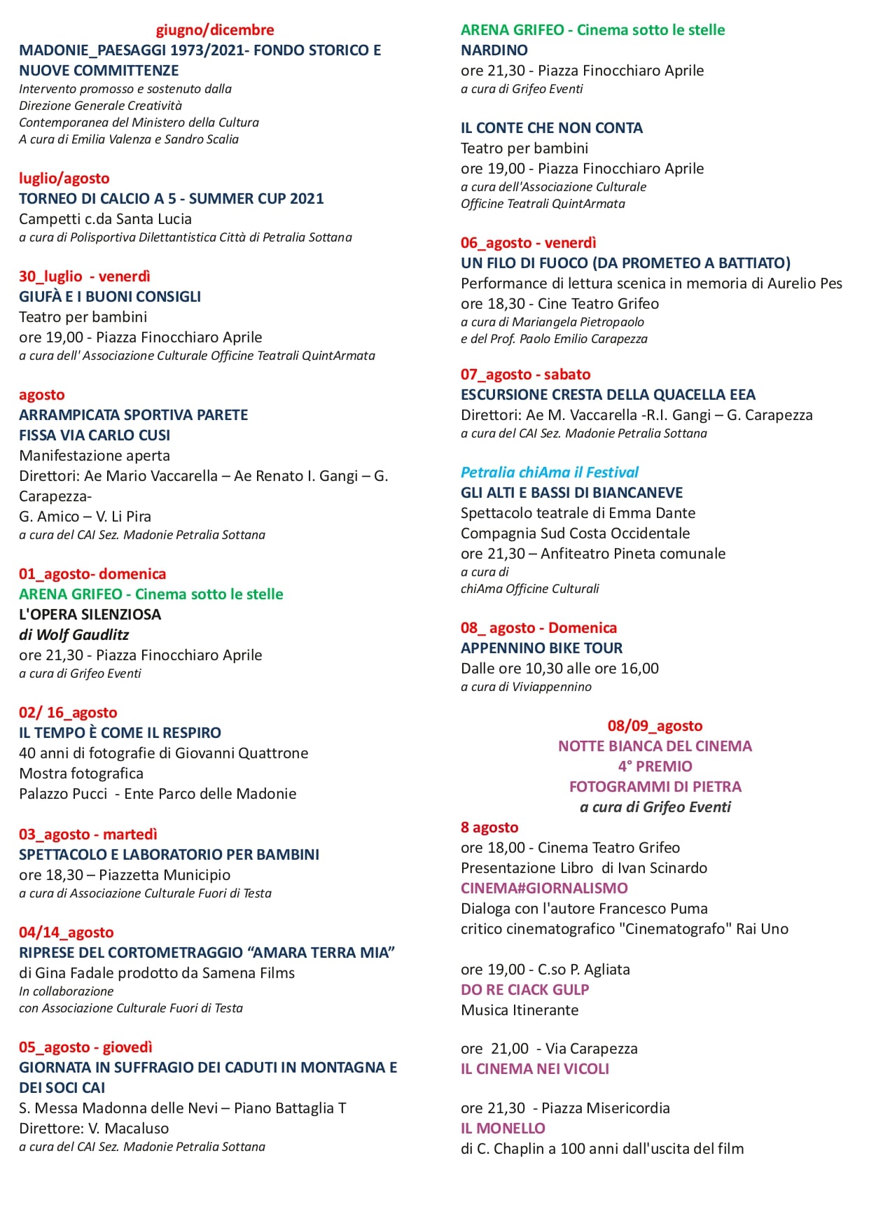 UN ESTATE DA VIVERE ALL’APERTO-PARCO DELLE MADONIE LE MANIFESTAZIONI